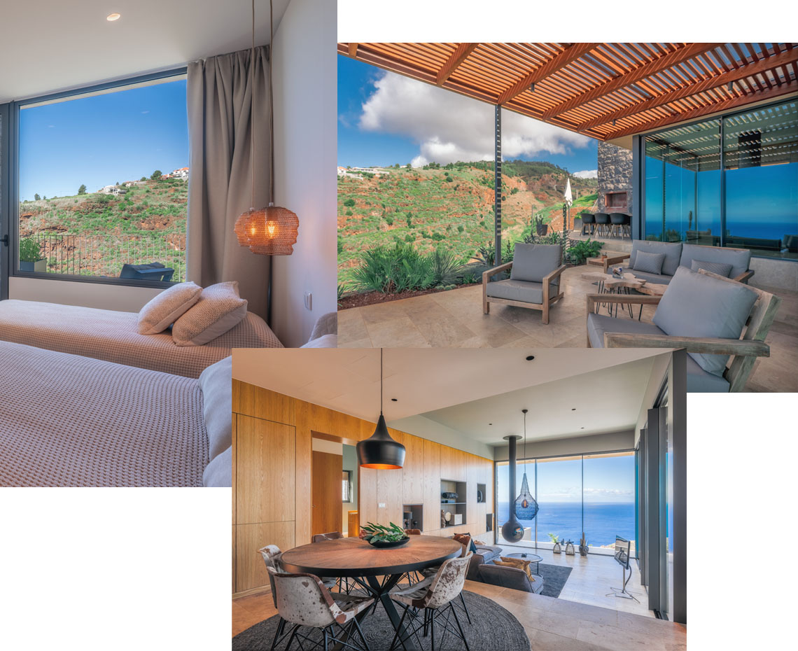 The Rock Villas proposes 3 bedrooms for up to 6 guests, and great facilities such as its private heated swimming pools and other luxurious pieces of equipment. The 2 recent villas blend harmoniously in the cliffy landscape while offering large views over the Atlantic ocean: a peaceful and stylish getaway on the South West coast of the island of Madeira.